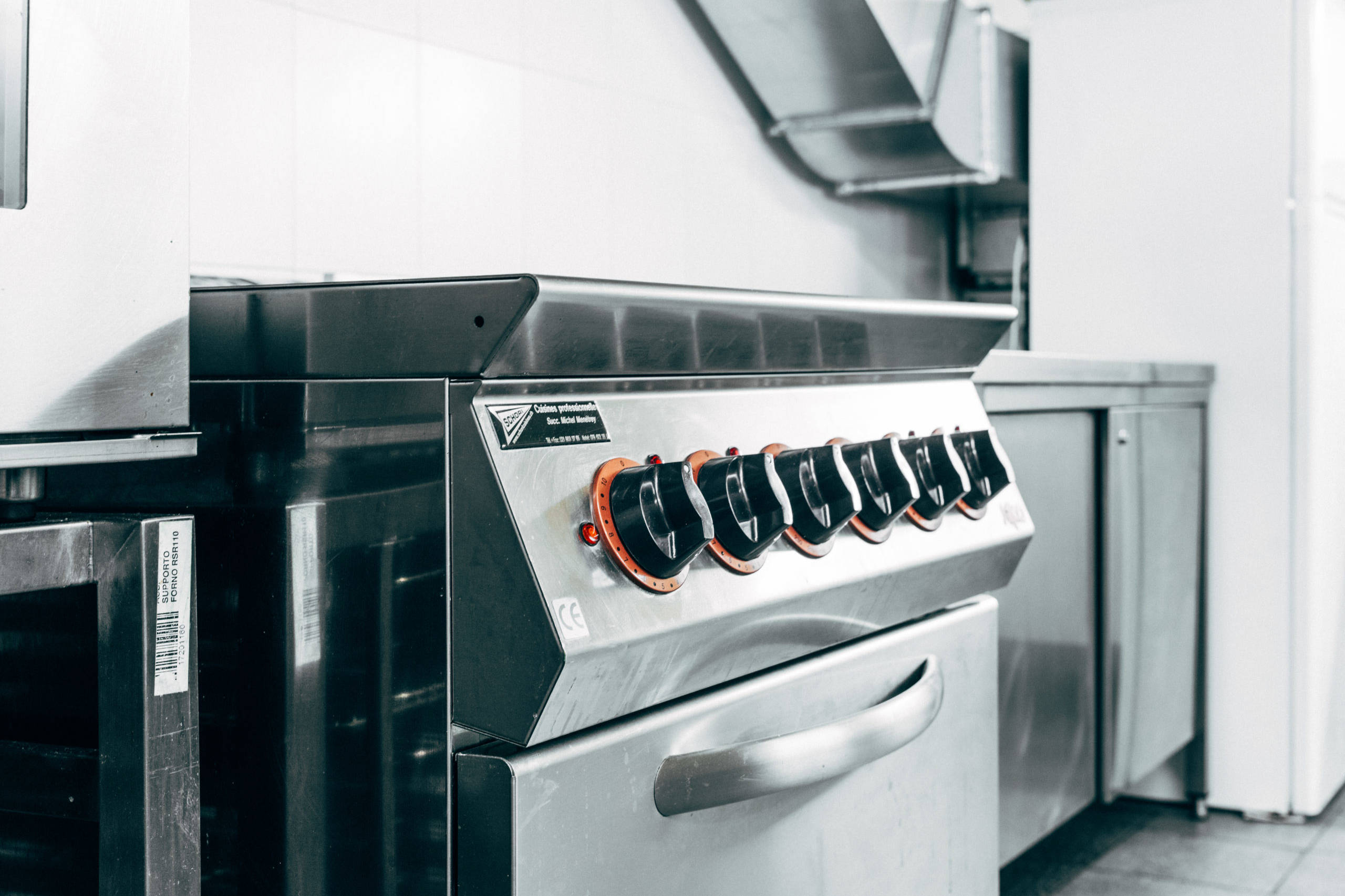 Cuisine de finition équipée d’un four à vapeur, d’un four traditionnel, de plaques vitroceram, de la vaisselle et d’une chambre froide en été.