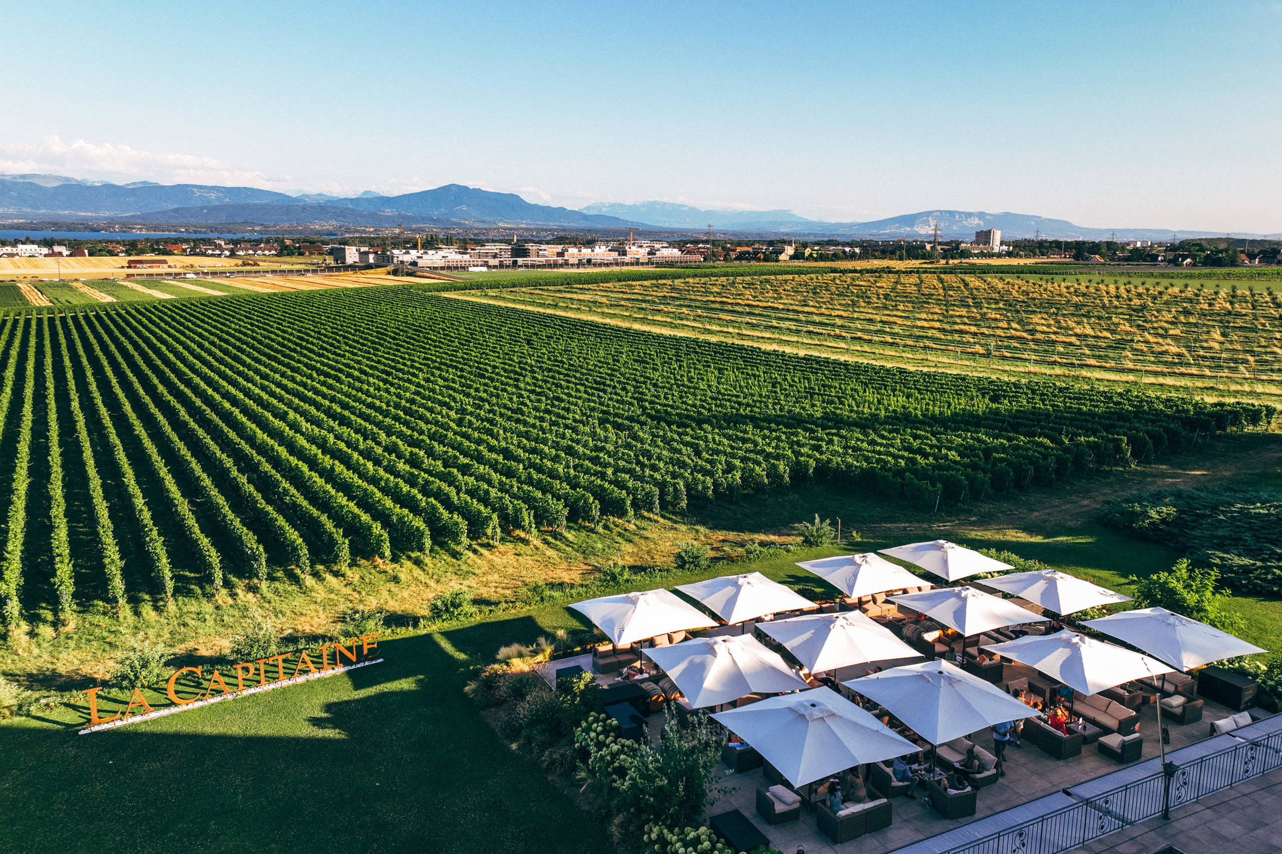 Haut-lieux au cœur des vignes de la Côte, nous vous accueillons au Domaine La Capitaine pour vos événements privés ou d’entreprise. Une parenthèse au milieu d’un paysage idyllique et unique. Doté d’un bar à vin meublé avec charme, d’un chai à barriques et d’une grande salle, d’un parc et de deux terrasses lounge donnant sur le lac, le Mont-Blanc et la vigne, il offre une vue à couper le souffle.