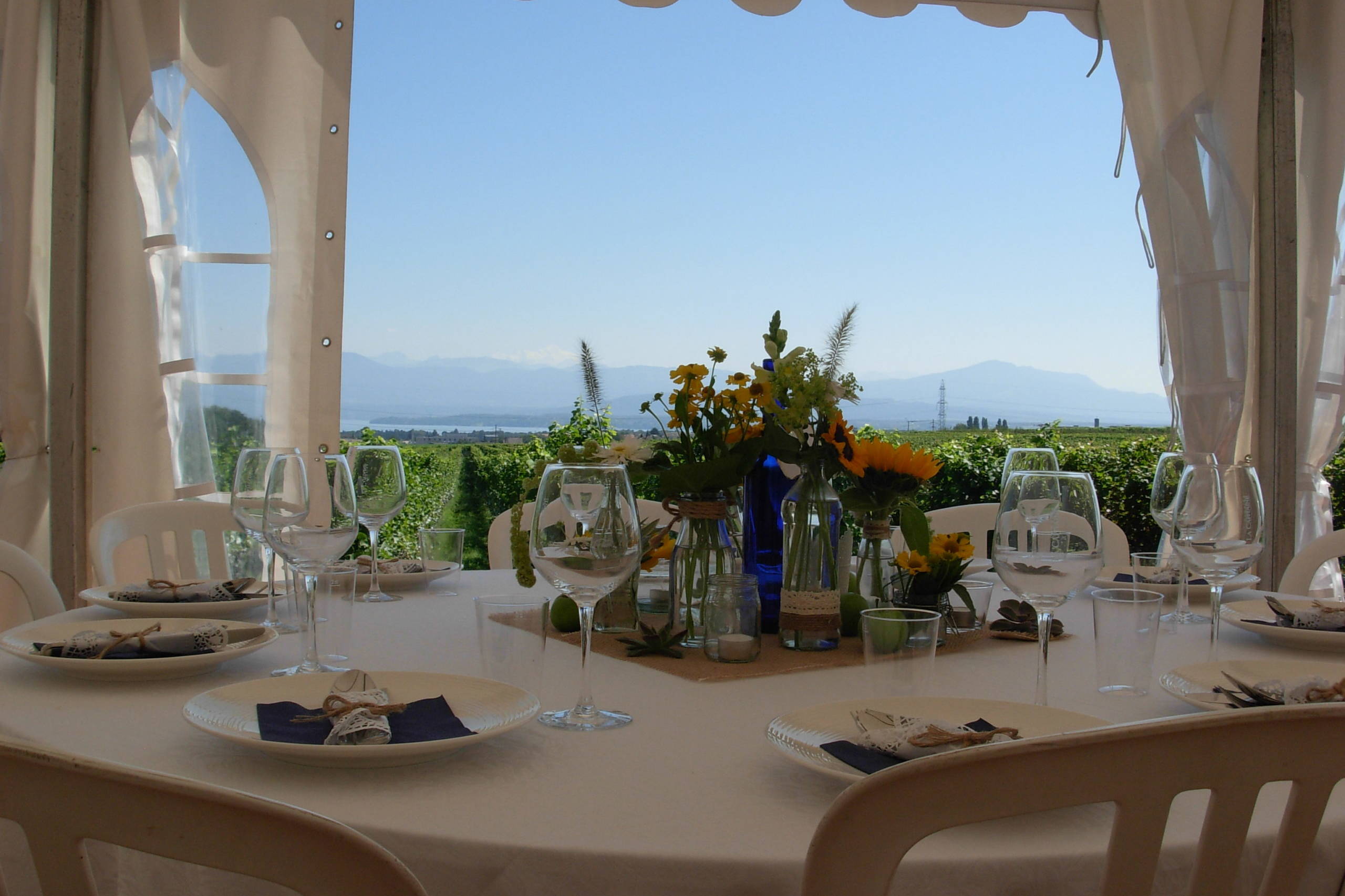 Célébrez votre mariage dans un cadre champêtre, romantique et pittoresque avec en toile de fond nos vignes, le lac, Mont-Blanc et les Alpes. Que ce soit pour vos cérémonies, vin d’honneur ou repas assis ou encore cocktail de mariage, nos salles sont aménagées pour répondre à vos envies et besoins. Poursuivez avec une soirée dansante, le Domaine vous accueillera jusqu’à 2h du matin.