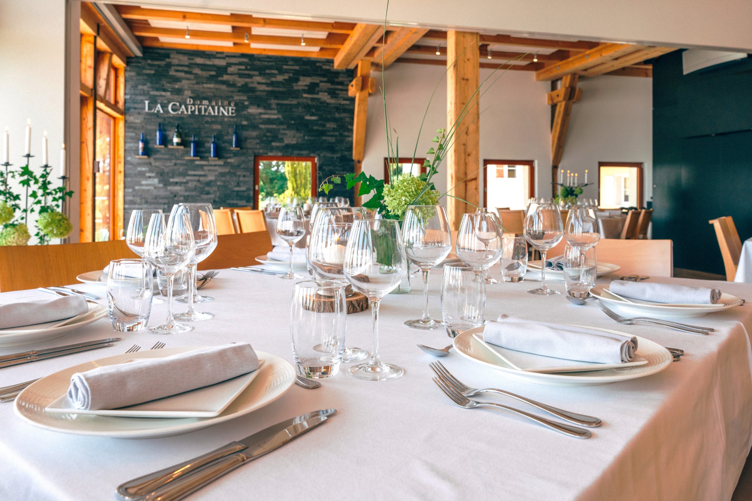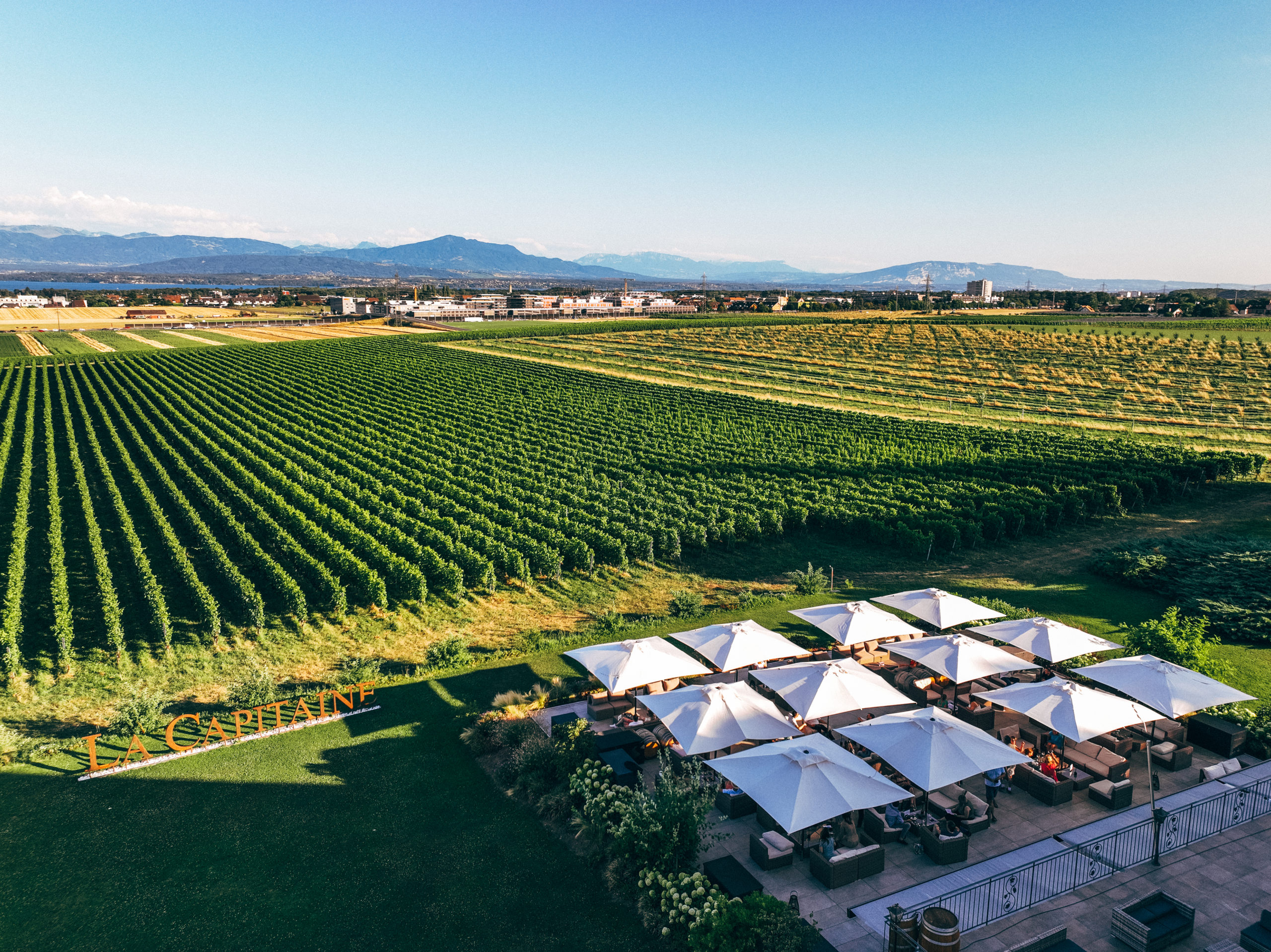 Haut-lieux au cœur des vignes de la Côte, nous vous accueillons au Domaine La Capitaine pour vos événements privés ou d’entreprise. Une parenthèse au milieu d’un paysage idyllique et unique. Doté d’un bar à vin meublé avec charme, d’un chai à barriques et d’une grande salle, d’un parc et de deux terrasses lounge donnant sur le lac, le Mont-Blanc et la vigne, il offre une vue à couper le souffle.