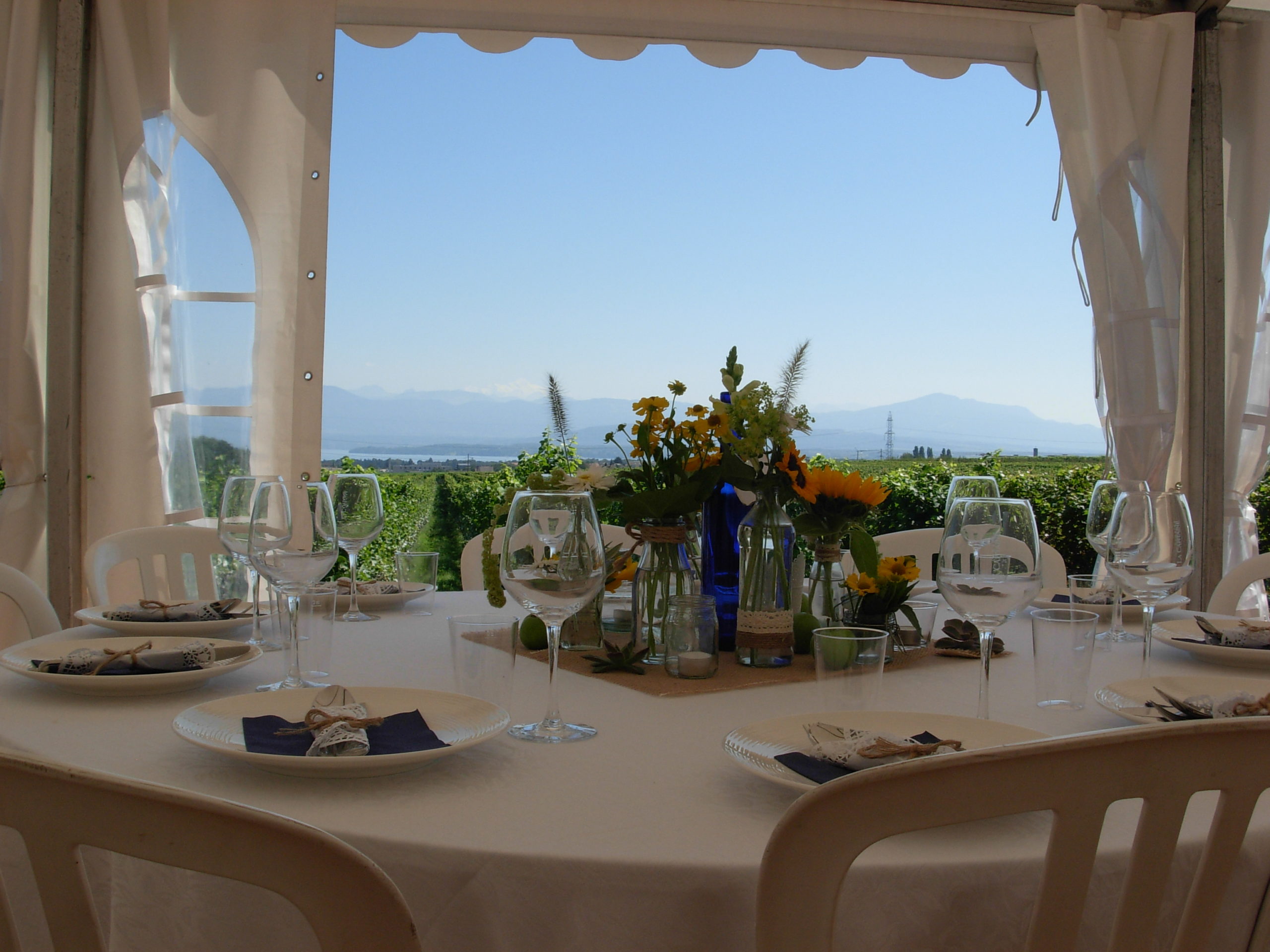 A 20 minutes de Genève et de Lausanne et 3 minutes de la sortie d’autoroute Gland, au cœur du vignoble vaudois, nous accueillons vos évènements tous les jours de l’année dans notre superbe salle de réception, avec: